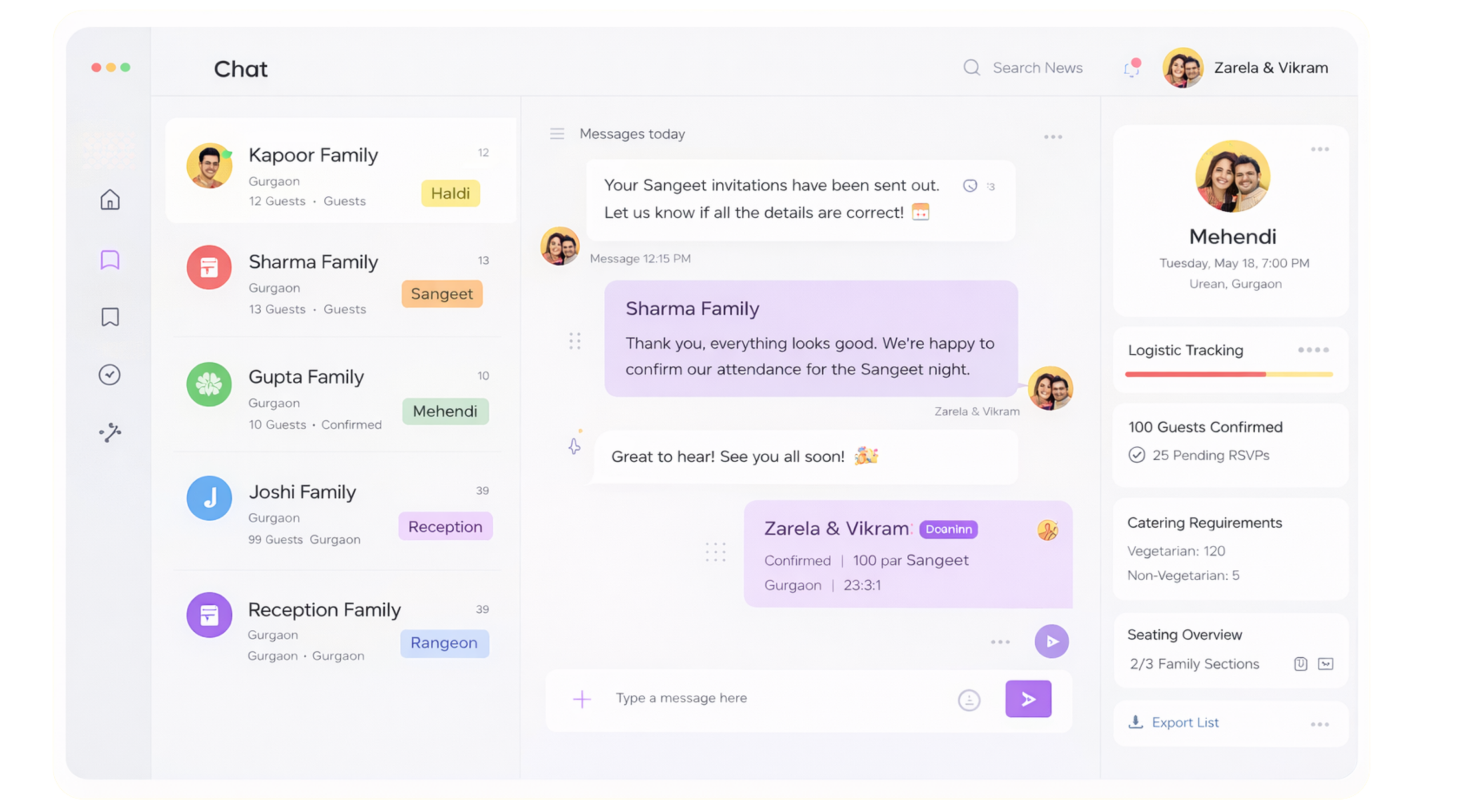 We saved time, reduced catering confusion, and kept our entire family informed without creating multiple WhatsApp groups.